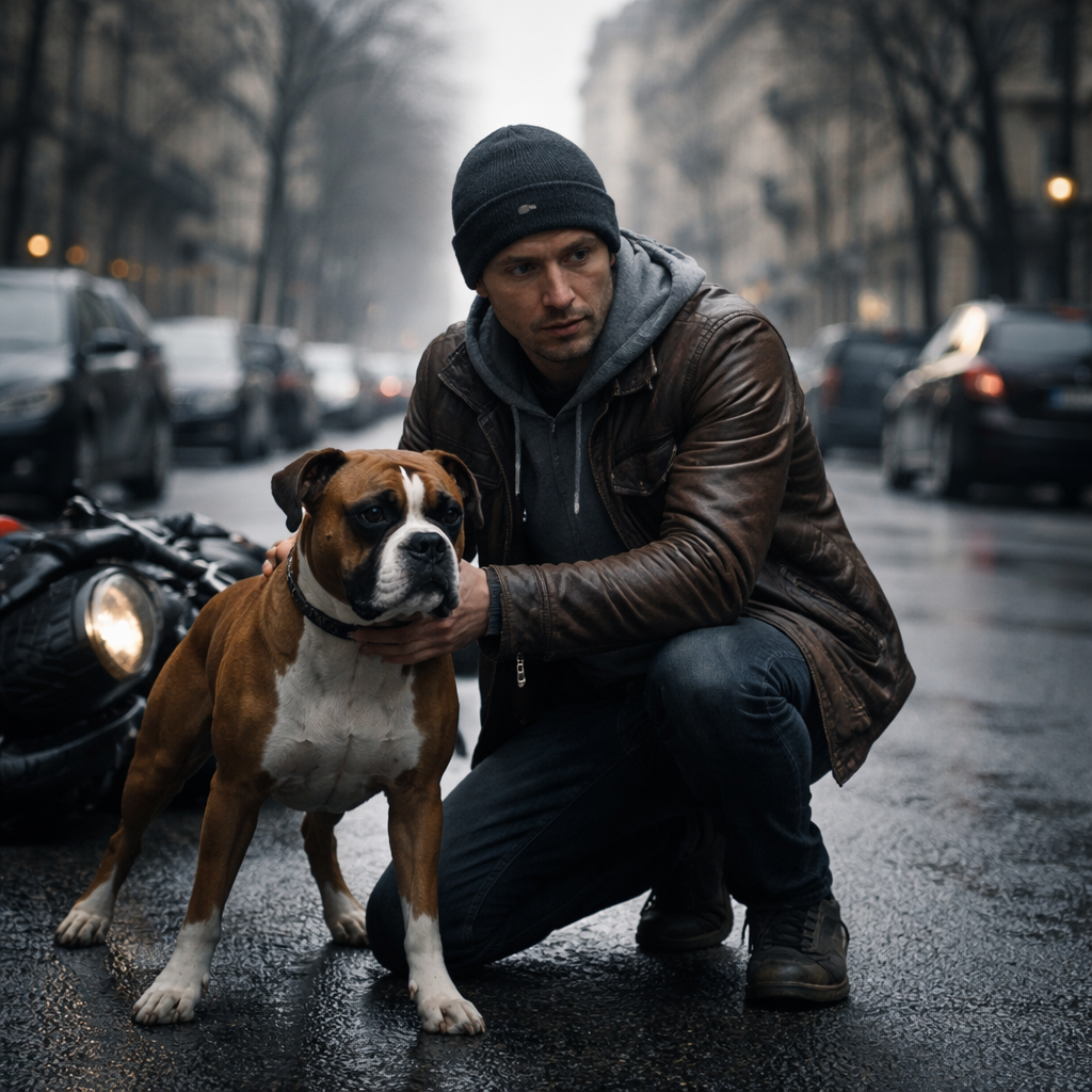 Тиша зависла так щільно, що було чути, як вітер облизує метал дорожніх знаків. Чоловік зі складу ковтнув повітря й раптом сказав те, що зламало останню спробу виглядати добрим: «Він… він вкусив людину». Натовп завмер. Хтось пробурмотів: «То, може, він небезпечний?» Але пес у Клима на руках не виглядав небезпечним. Він виглядав зламаним. Чоловік продовжив, ніби виправдовувався перед невидимим суддею: «Мені сказали, що якщо викличу відлов, його заберуть. А такі собаки… вони не повертаються. Я злякався. Я не хотів, щоб… щоб його приспали». Слова «приспали» прозвучали брудно, як іржа на ланцюгу. І водночас — як вирок, який він сам собі придумав, щоб нічого не робити.