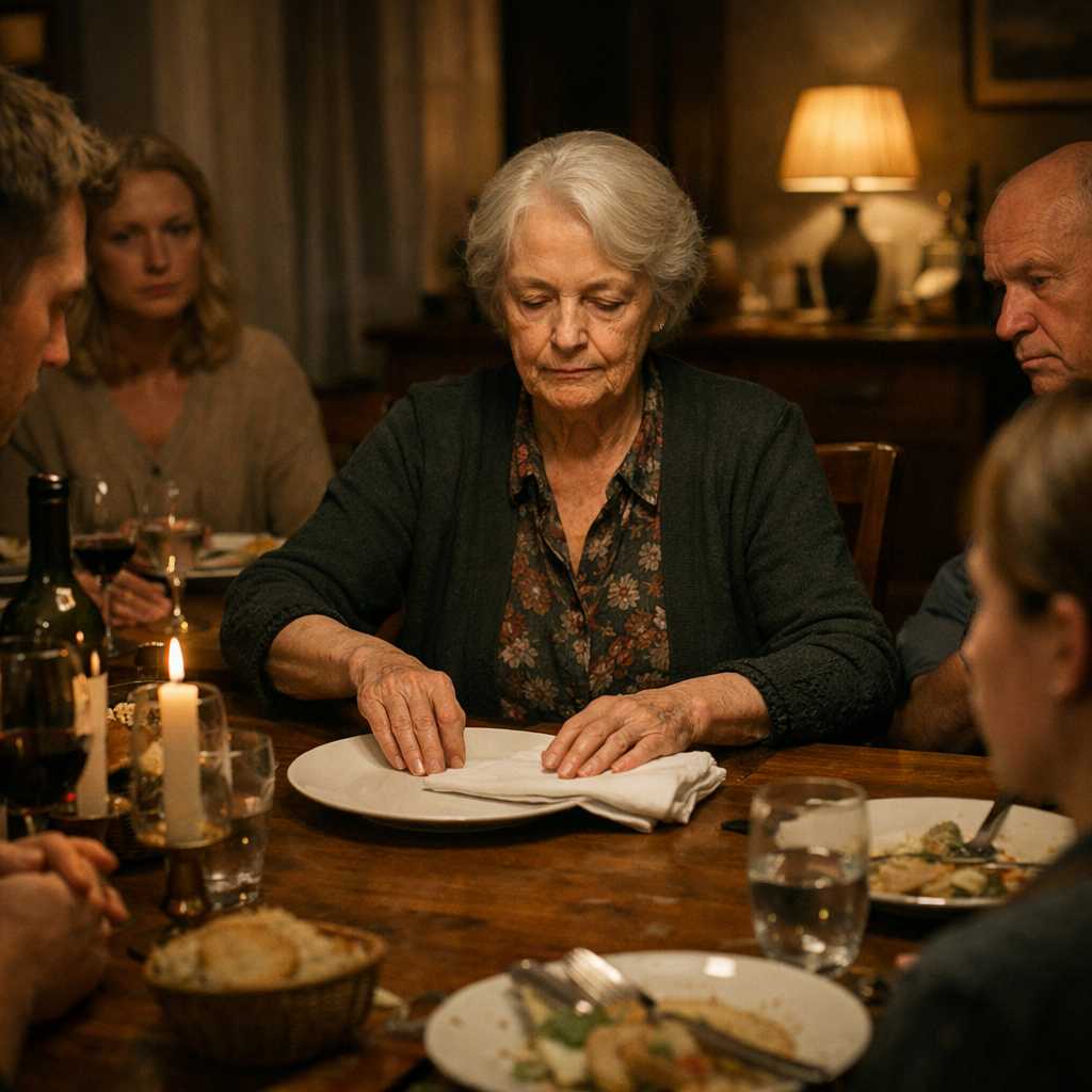 «Серйозно? Вона знову бере добавку? Збирається доїсти все?» — кинув Михайло навіть не підвищуючи брови. Сміх зірвався швидко майже автоматично. Максим ховав посмішку за екраном. Роксолана хихикнула в долоню. Емілія не засміялася але й не стала поруч: вона опустила очі в тарілку, ніби візерунок міг затягнути її під воду і звільнити від вибору. У мені щось стало тихим. Не розбилося. Просто зачинилося. Я відклала виделку, витерла губи лляною серветкою, яку вишивала колись молодими руками, й повільно підвелася. Не для сцени і не для прохання. Просто тому, що зрозуміла: від мене чекали, щоб я зменшилася ще. «Перепрошую» — сказала я тихо.