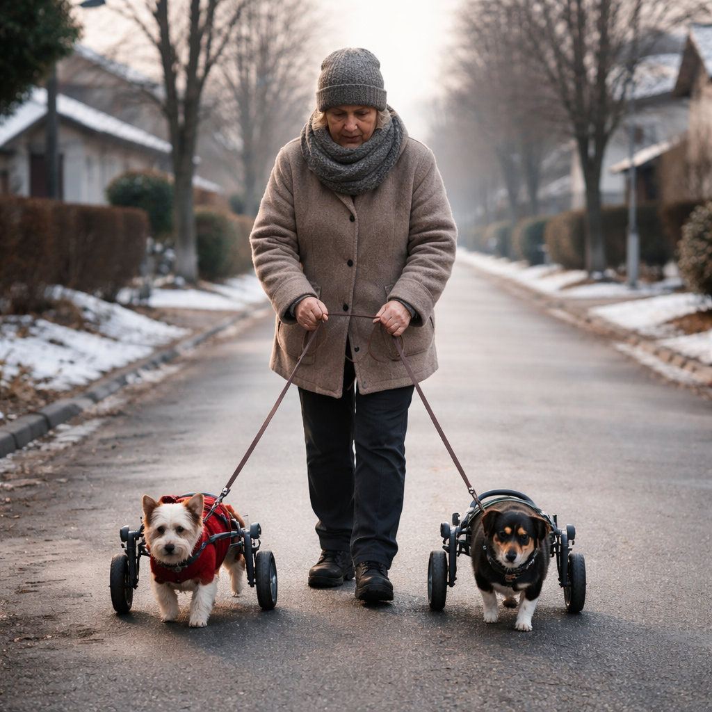 Так у моєму житті й з’явилися Перлинка і Бодя. Двоє маленьких песиків із притулку, в обох задні лапки майже не працювали. Хтось їх покинув, коли зрозумів, що це не “миленька іграшка”, а відповідальність. Їм зробили маленькі візочки — і з того дня вони не ходять, як інші. Вони котяться. Їхні коліщатка тихенько цокають по тротуару, а хвостики махають так, ніби життя — це свято.