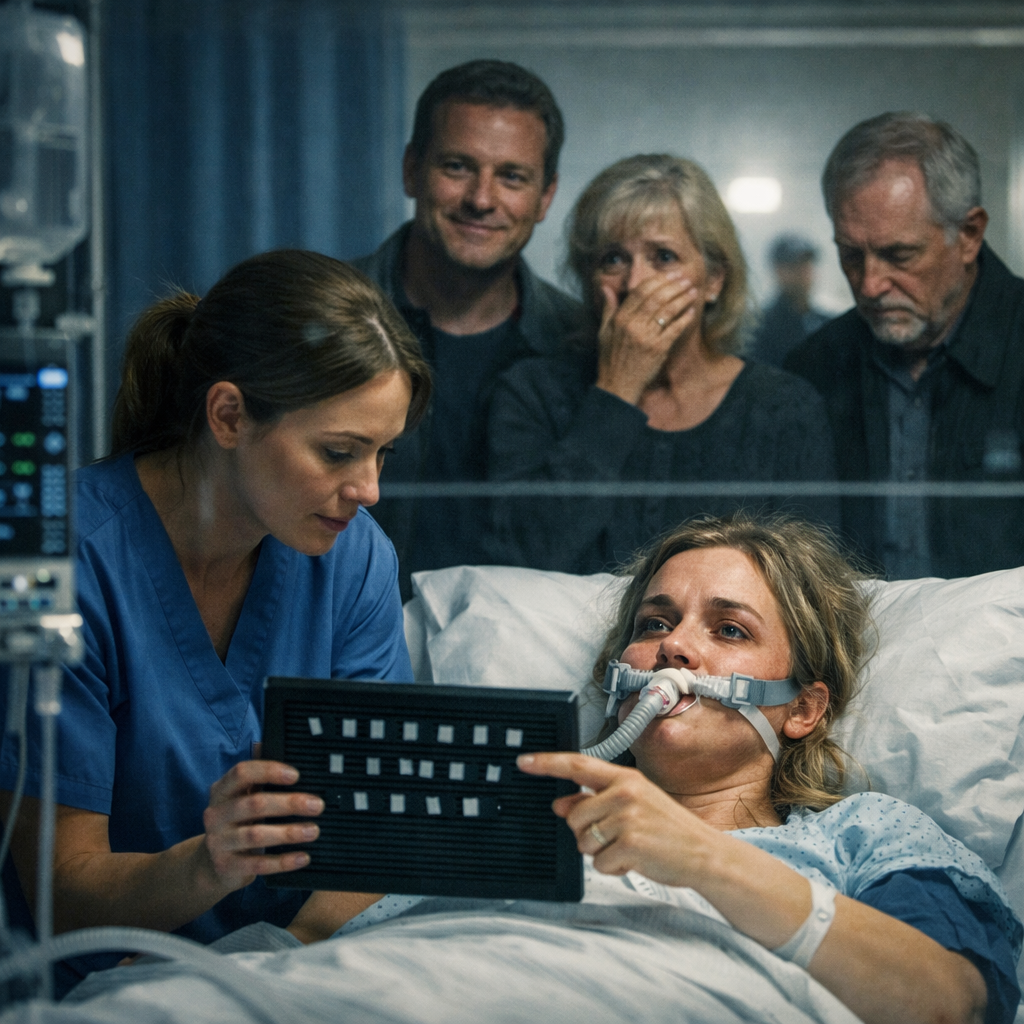 Я не могла говорить. Трубка всё ещё была во мне, горло горело, голос был украден. Но теперь мне не надо было кричать, чтобы меня услышали. Лена подняла простую буквенную доску — лист с крупными буквами. Я сосредоточила взгляд, и они поняли: я могу выбирать буквы глазами. Я начала складывать слова медленно, будто по крупице возвращая себе право на правду: